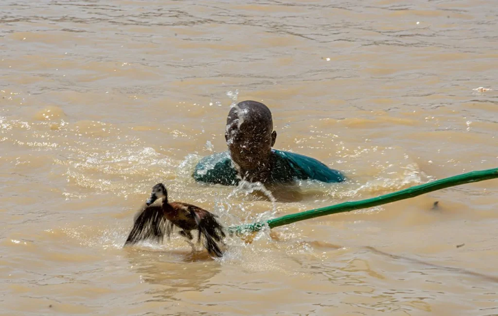 Back on the river, other contests unfolded. Competitors leapt into the water for the wild duck-catching challenge, while younger girls took part in bare-handed fishing events, splashing and laughing as they tried their luck.